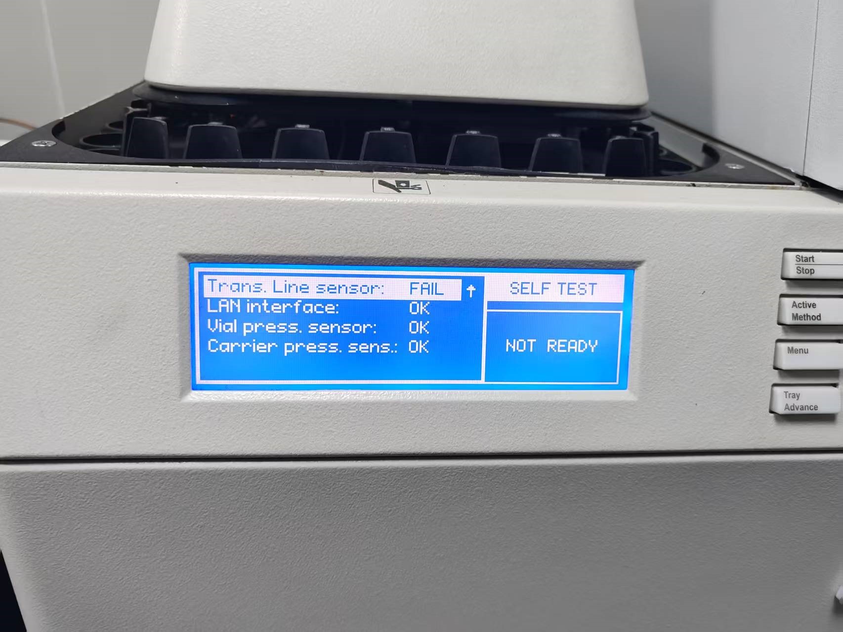 实验室中安捷伦G1888顶空进样器开机自检报错"传输线温度传感器失败",设备无法完成自检流程,直接停滞在报错界面。用户紧急报修,希望快速恢复设备运行。